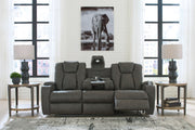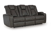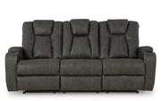 Built for everyday relaxation, this reclining sofa with drop-down table takes a balanced approach to comfort. Its practical one-pull reclining motion allows you to kick back and unwind with ease. Universal in style, the richly hued faux leather suits aesthetics from casual to contemporary. Cup holders and storage, plus wireless and USB charging, keep essentials close for a laid-back lounging experience.