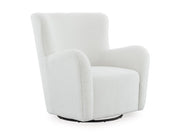 From sipping morning coffee to winding down with a book, this swivel glider accent chair encourages easy living. Ultra-cozy faux shearling upholstery lends a luxuriously cozy look and feel. A curved wingback design envelops you in comfort.