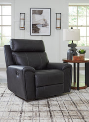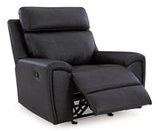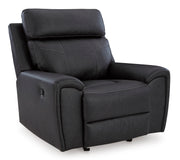 Recline in exquisite design. An on-trend addition for modern spaces, this glider recliner welcomes you with style. It's dressed to impress with sleek track arms and a bustle back. Soft faux leather upholstery provides the upscale look you want for less. And the relaxing smooth-gliding motion takes comfort to another level.