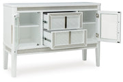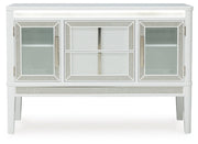 Embracing modern glamour, this server is a sparkling addition to your dining area. The bright white lacquer finish, shimmering rhinestone accents and glass panel doors give this piece plenty of polish. Discreetly placed along the upper valance, white LED lighting adds the perfect finishing touch.